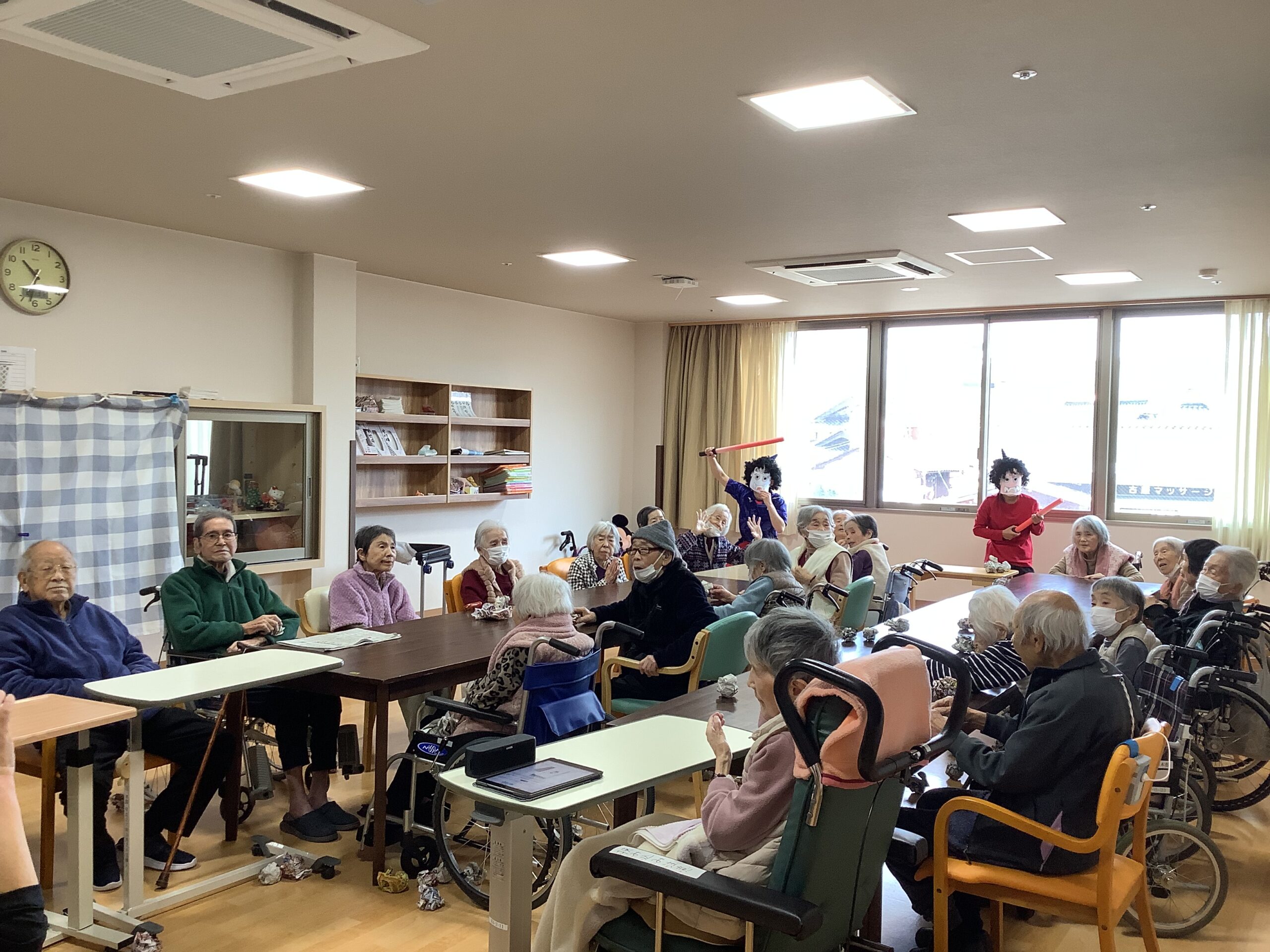 節分豆まき👹(本館) 2026年2月5日 コメントはまだありません 本館では節分の日に豆まきをして1年間の無病息災を願いました。 赤鬼さんも青鬼さんも元気よく暴れていましたが、皆さんの熱気ある豆まきに、最後は降参して倒れ込んでいました。 今年1年皆さまが健康で穏やかに過ごせますように…