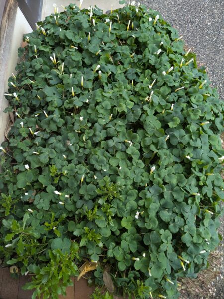 グループホームの玄関にオキザリスの花が広がっています。